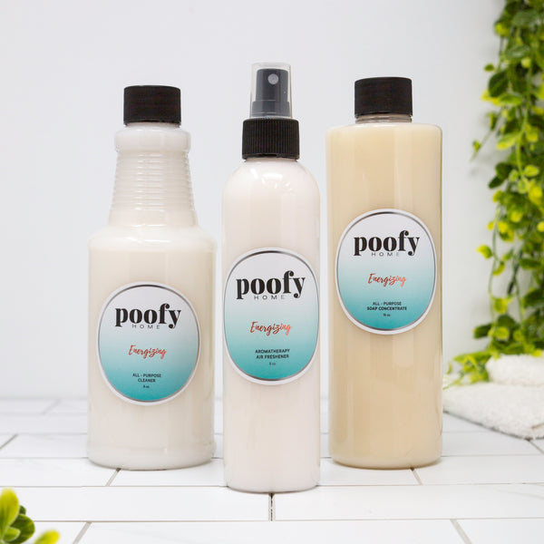 Energizing Essential Oil Blend – A bright, earthy-citrus fusion of Bergamot, Cedar, Clove, Geranium, Ylang Ylang, Black Pepper, Cinnamon, Lemon, Orange, Grapefruit, Vetiver, and Lavender that energizes and deodorizes with every spritz.